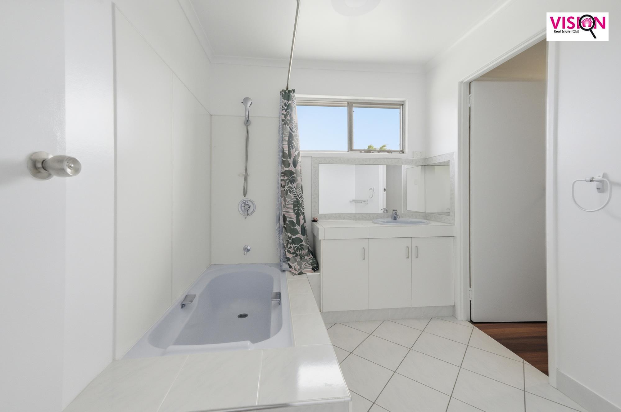• Dual-access tiled bathroom from the main bedroom and hallway with shower and bath