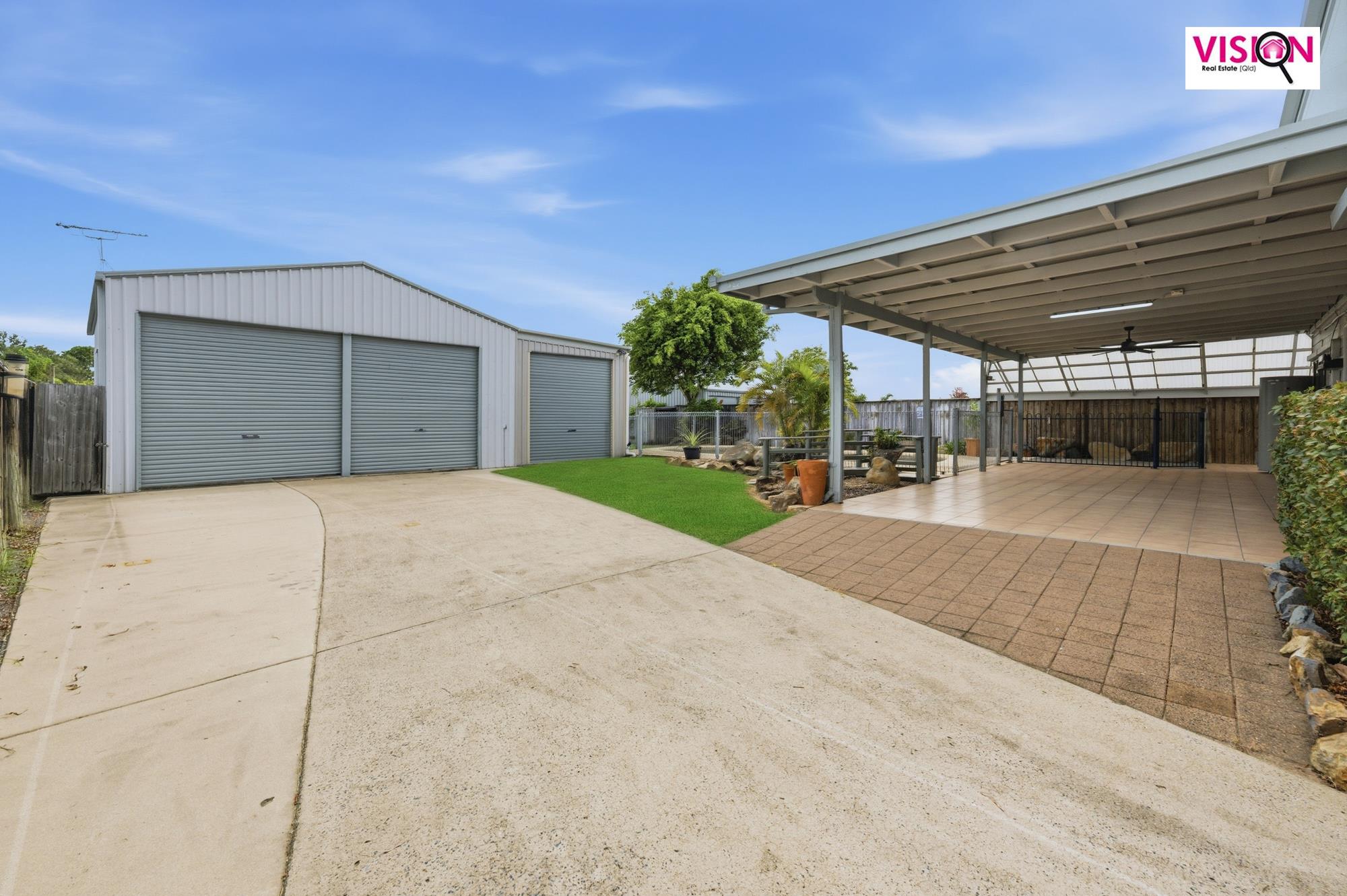 • Full-length concreted driveway with gated side access to the shed